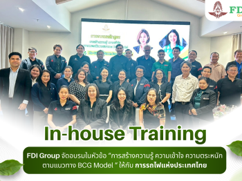 FDI Group ให้บริการจัด In-house Training หลักสูตรอบรมสำหรับองค์กร FDI Group ได้ออกแบบหลักสูตรเพื่อพัฒนาศักยภาพของบุคลากรในองค์กร ที่ช่วยให้ผู้อบรมได้รับความรู้ที่ตรงกับงานจริง ซึ่งส่งผลโดยตรงต่อประสิทธิภาพการทำงานและความสามารถในการแข่งขันขององค์กรในระยะยาวได้ หากองค์กรใดต้องการจัดอบรมภายในด้านสิ่งแวดล้อมและความยั่งยืน ด้านการจัดการพัฒนาเพิ่มศักยภาพพนักงาน หรือด้านอื่นๆ สามารถขอรับคำปรึกษาได้ฟรีทันที ทุกการจัดอบรมเป็นเรื่องง่ายได้ผลลัพธ์จริง เพียงคุณปรึกษาเราตอนนี้ !! FDI จัดอบรมให้กับการรถไฟแห่งประเทศไทย ขอขอบคุณทาง สถาบันฝึกอบรมระบบราง การรถไฟแห่งประเทศไทย ที่ให้ความไว้วางใจในการจัดอบรมให้กับผู้บริหาร – เจ้าหน้าที่ ด้วยหลักสูตร การสร้างความรู้ ความเข้าใจ ความตระหนักตามแนวทาง BCG Model โดยทีมวิทยากรผู้เชี่ยวชาญจาก FDI Group เพื่อเจาะลึกเนื้อหา พร้อมแนวทางปฏิบัติที่มุ่งเน้นผลลัพธ์ใช้ได้จริงในระยะยาวสำหรับองค์กร โดยวิทยากรจาก FDI Groupผศ.ดร. ธีรินทร์ คงพันธุ์ ผู้เชี่ยวชาญด้าน BCG – ESGผศ.ดร. มณีรัตน์ เข็มขาว ผู้เชี่ยวชาญด้านพลังงานและสิ่งแวดล้อม การจัด In-house Training เพื่อการพัฒนาองค์กรอย่างยั่งยืน ในปัจจุบันหลายองค์กรเริ่มนำ In-house […]