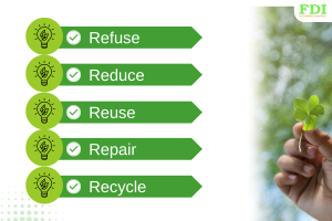 ในยุคที่โลกกำลังเผชิญกับวิกฤตสภาพภูมิอากาศ แนวคิด 5R จึงไม่ได้เป็นเพียงการจัดการขยะเท่านั้น แต่เป็นหนึ่งในเครื่องมือสำคัญที่ช่วยสนับสนุนการลดคาร์บอนฟุตพริ้นท์ และสร้างสังคมที่ยั่งยืนในระยะยาว